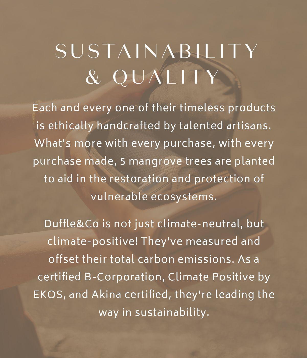 Discover the world of Duffle&Co and embrace the sustainable luxury that sets them apart. Shop now and be part of the change!