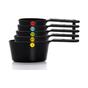 In this set, you’ll find a 1/4 cup, 1/3 cup, 1/2 cup, 2/3 cup, 1 cup and a scraper. Each cup snaps together for compact, organised storage. This innovative snapping feature allows you to remove one cup at a time, while the remaining cups staying together. As well as an array of measuring cups, this set also comes with a scraper that can be used to level off ingredients. In addition to that, the scraper can also be used as a hanger for easily accessible storage.