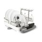 With a stainless steel frame and molded plastic caddy, this rack is durable and easy to wipe down. It is a generous size, with the capacity to hold up to 15 individual plates. It also has a moveable stemware holder and utensil holder to make life a little easier.